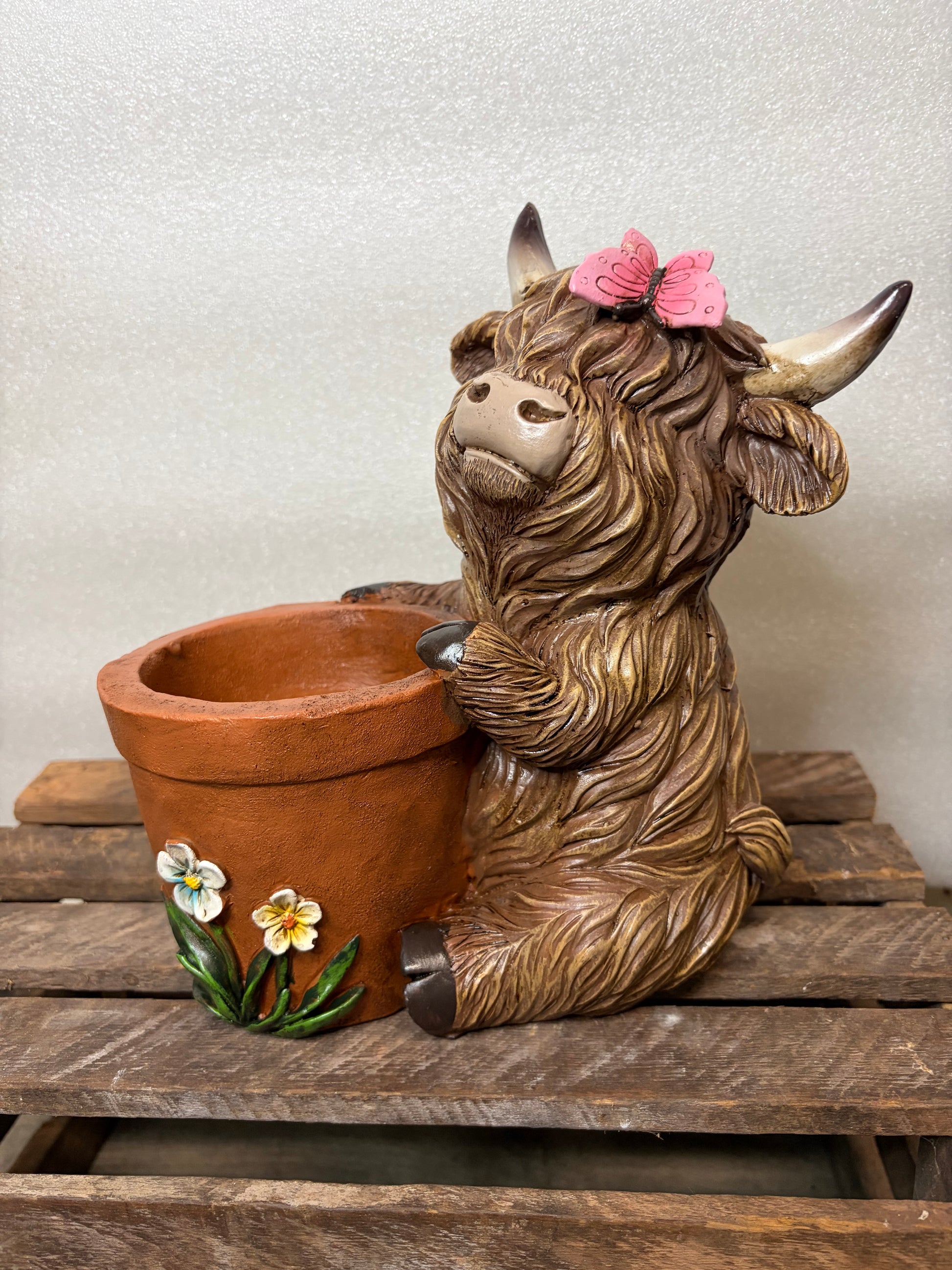 Highland Cow Planter with Butterfly on head