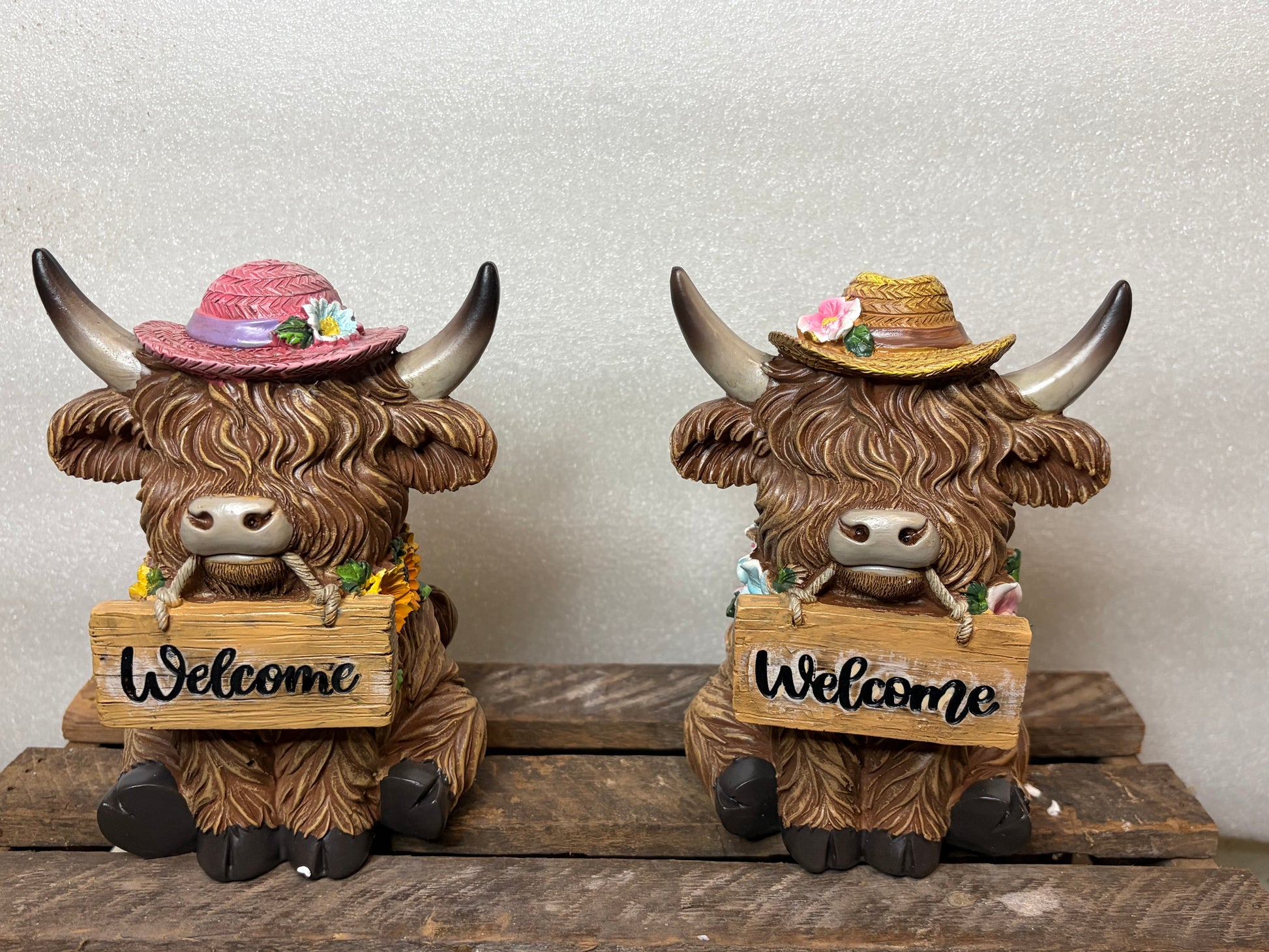 SET OF 2 Highland Cow with sign
